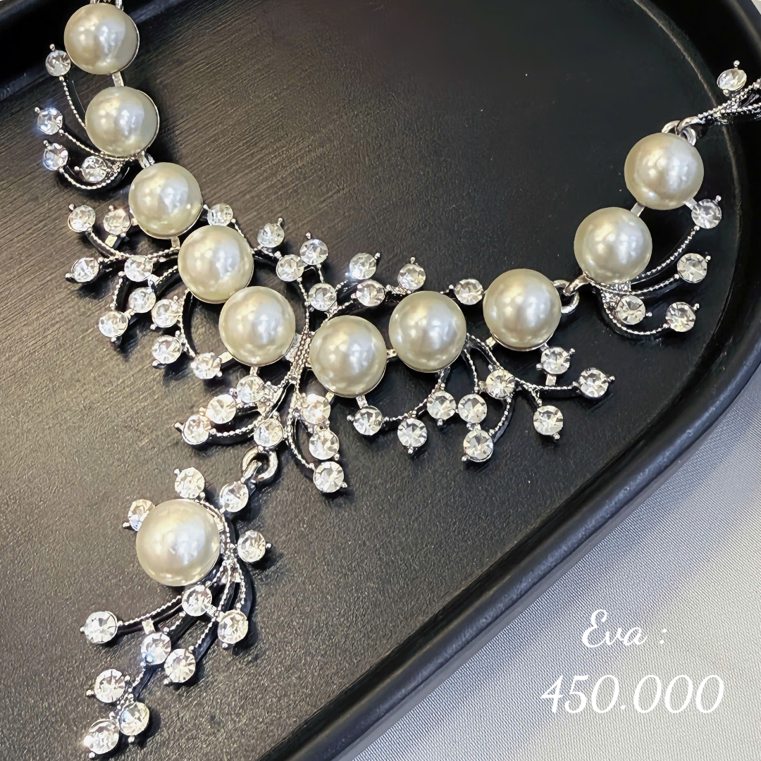 Eva Crystal-Embellished Necklace features delicately hand-set crystals that add a subtle sparkle. Elegant and refined, it is designed to elevate both everyday outfits and special occasions.
